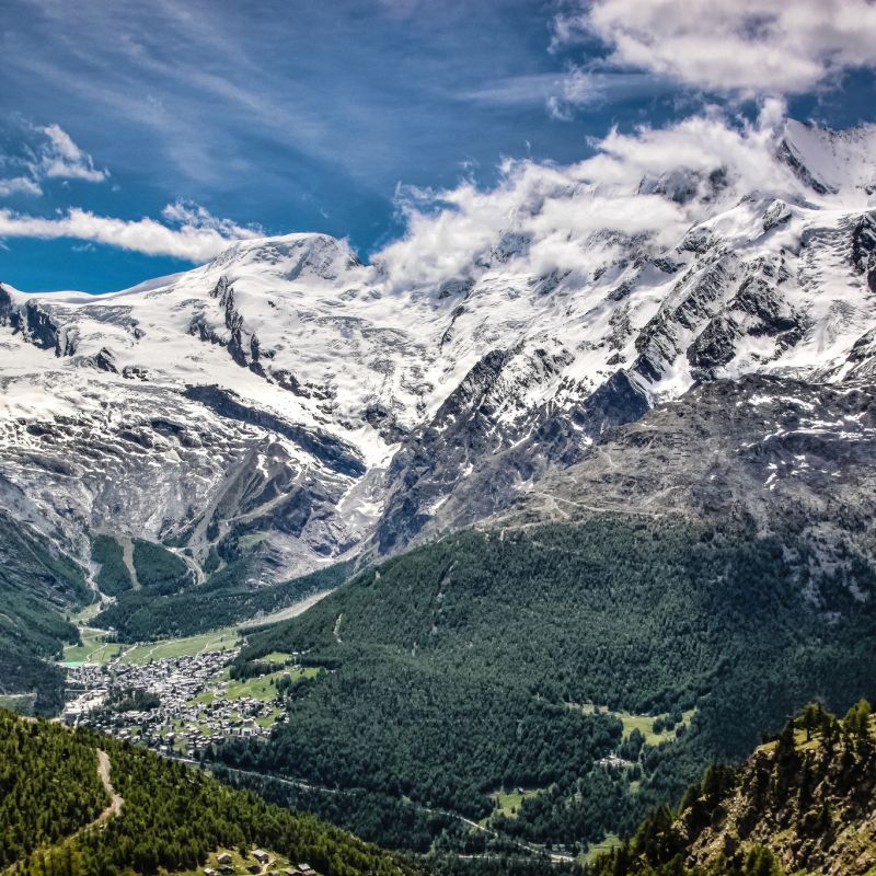 | Saas-Fee is the main village in the Saastal, or the Saas Valley, and is a municipality in the district of Visp in the canton of Valais in Switzerland. The villages in its neighborhood are Saas-Almagell, Saas-Grund and Saas-Balen. Its location close to the glaciers of the Dom and the Allalinhorn provides winter sport opportunities throughout the year, and neighbouring peaks such as the Weissmies, the Nadelhorn and the Lenzspitze are popular climbs in the summer season. The community is considered to be a very attractive winter sport destination in the Swiss Alps. Typical activities include skiing, carving, snowshoe trekking, canyon climbing and ice climbing. Saas-Fee offers 22 lifts, including 3 cable cars, 1 funicular railway (Metro Alpin), 5 gondolas (1 dedicated to walkers), 2 chairlifts, the remainder being surface lifts (draglifts). The ski run has a vertical drop of 1,800 m (5,906 ft), a top elevation of 3,550 m (11,647 ft) and covers 100 km (62 mi) (30 km (19 mi) beginner, 45 km (28 mi) intermediate, 25 km (16 mi) advanced). Other activities include snowboarding (halfpipe and park), paragliding, hang gliding, and tobogganing. |